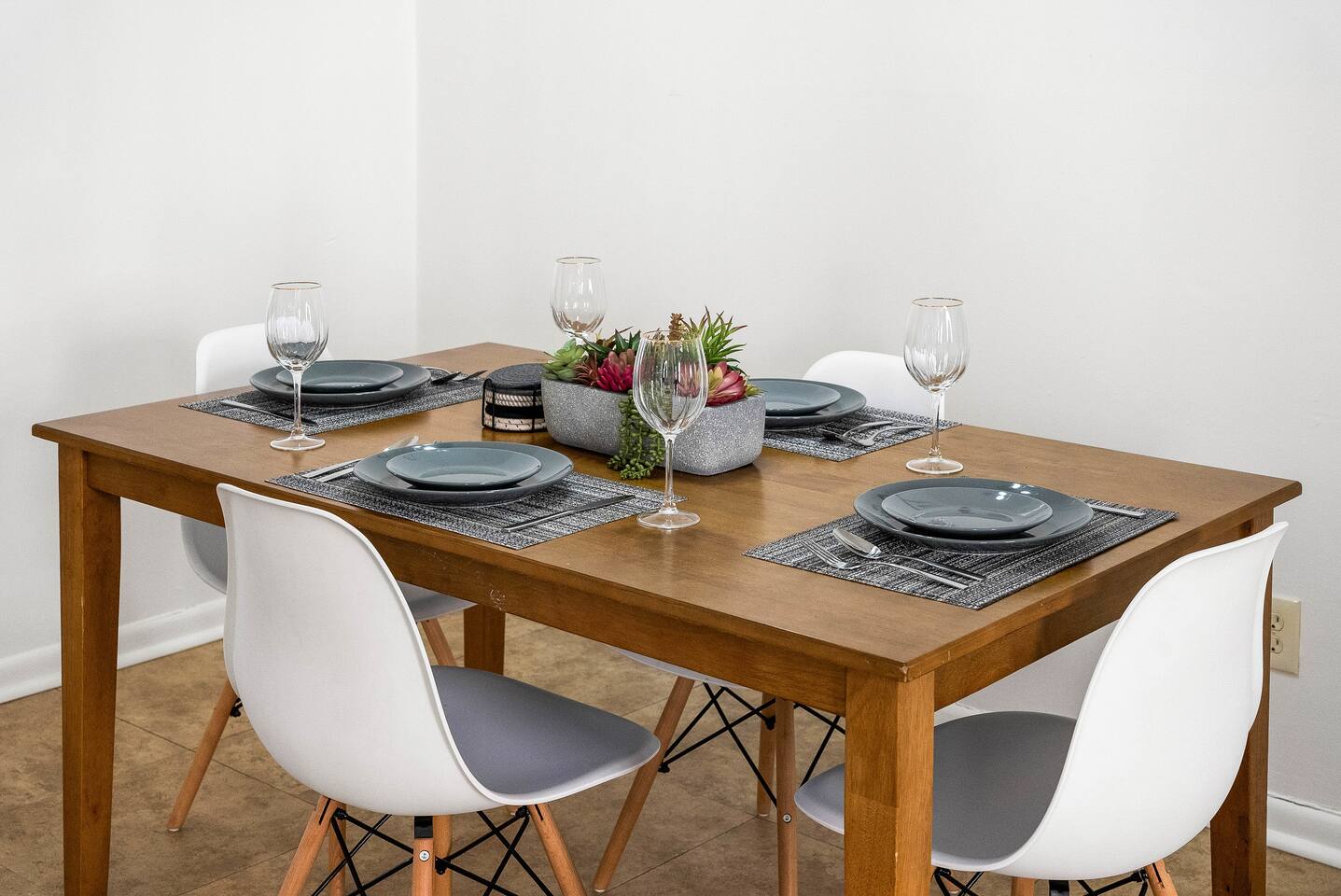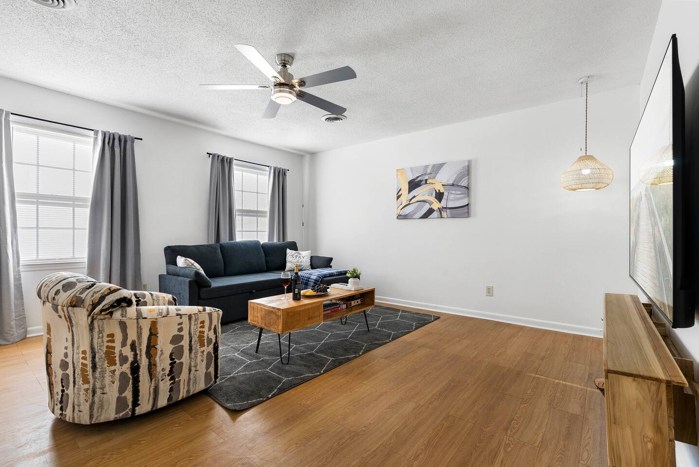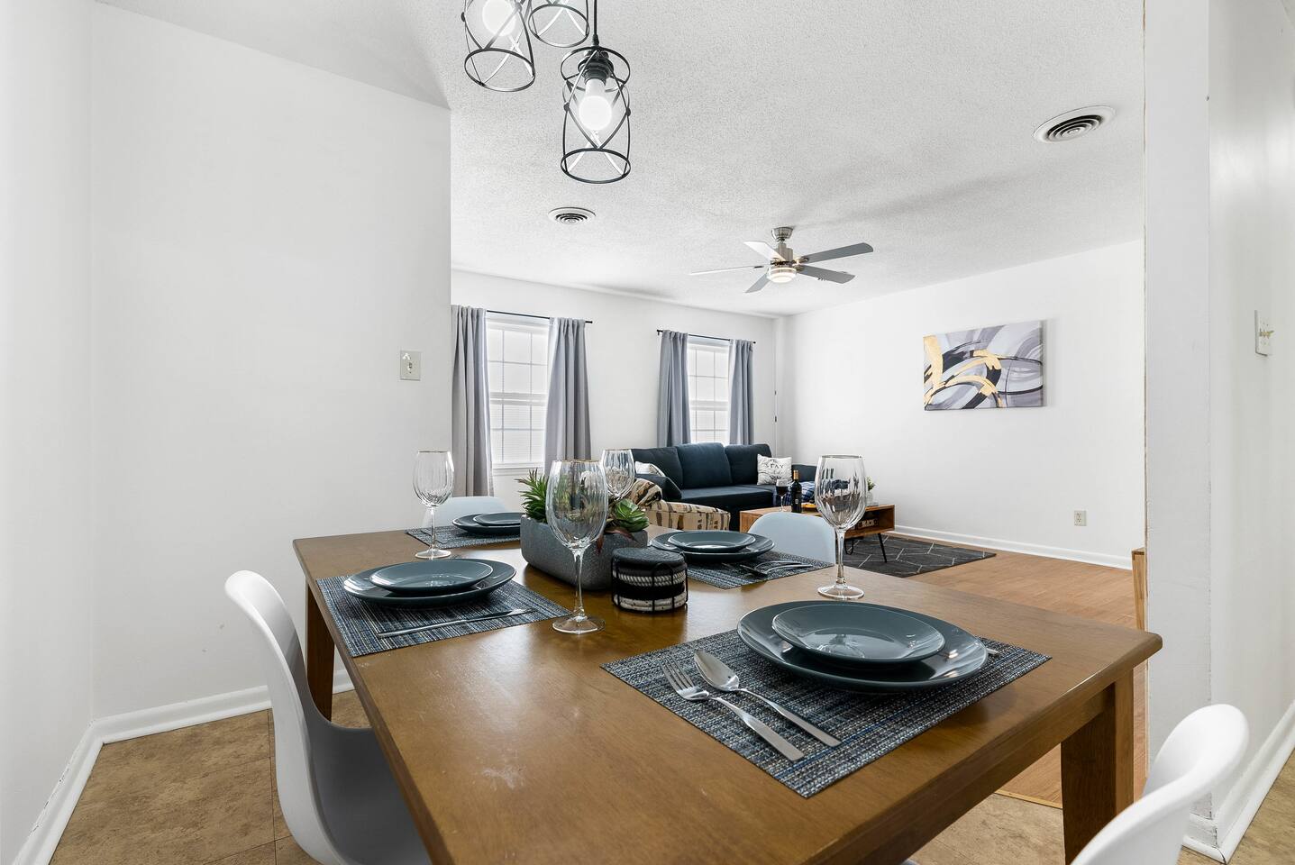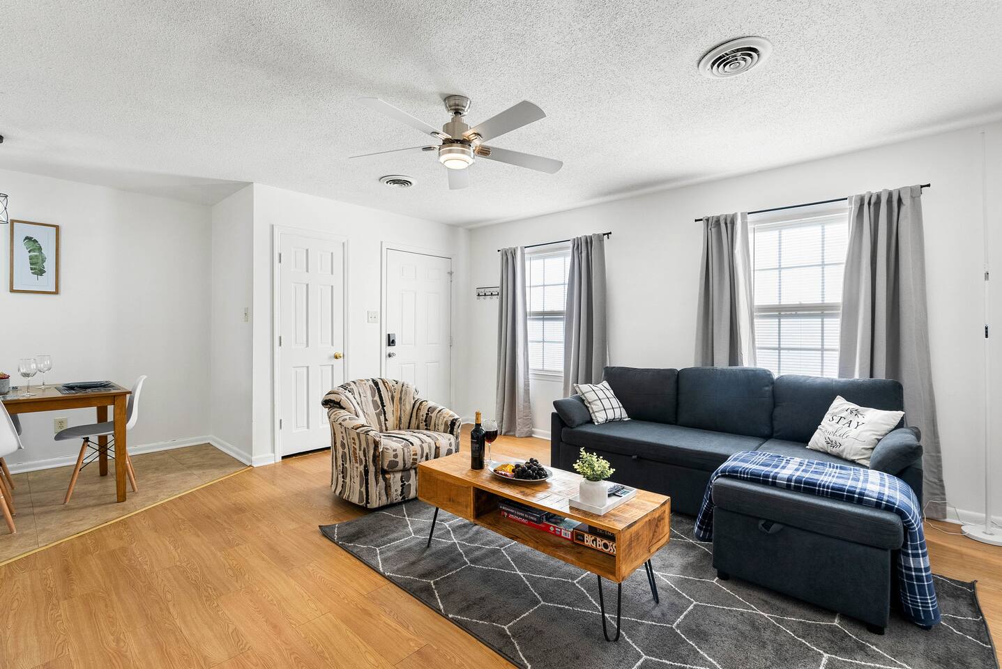The Space Ideal for working professionals, couples, families, or anyone visiting Spartanburg for a relaxing getaway. Centrally located, our home places you close to Spartanburg’s vibrant culture. Enjoy nearby parks, savor local cuisine, or take a short drive to downtown Spartanburg for shopping, entertainment, and cultural attractions. You are only: 3 miles from Downtown Spartanburg 4 miles from Peter's Creek Heritage Preserve 5 miles to Hatcher Garden and Woodland Preserve 8 miles from Chapman Cultural Center The space: This beautiful brick property is a duplex on a residential street in a safe and friendly neighborhood. The house has reliable high speed internet which makes for a perfect work-cation getaway. A Bling Floodlight security camera is located at the front of the house for your security. There are no cameras inside the property. LIVING ROOM The cozy living room features a large comfy sofa and two accent chairs, a coffee table, for your hot cup of coffee, a smart TV for movie nights, and board games. * 1 comfortable sofa and 2 accent chairs * 75" 4K smart Roku TV with streaming services and Apple Airplay * TV counsel with cute decoration * Hanging rattan pendant light * Board games * Coffee table * Reading lamps KITCHEN Although there are excellent dining options in town, our kitchen is fully equipped with everything you need to prepare a delicious meal for you and your loved ones. Featuring modern appliances, cookware, glassware, and utensils, it has all the essentials for your culinary needs. The adjacent dining area comfortably seats four guests. * Refrigerator/freezer * Microwave * Stove * Oven * Keurig coffee maker * Complimentary Keurig pods & creamer * Toaster * Plates & bowls * Wine glasses * Coffee mugs * Glasses * Silverware * Pots & pans * Sink - hot & cold water BEDROOMS The home features two beautiful furnished bedrooms. Both offer high comfort and convenience needed to relax and rest. * 12" memory foam queen size mattress * Pillows, linens, and sheets * Blackout curtains * Full size closet with hangers and shelves * Folding luggage racks * Night stands with reading lamps * Desk for workspace BATHROOM The bathroom is fully stocked with fresh towels and all the essentials you will need. * Bathtub/shower combo * Vanity * Mirror * Toilet * Plush towels * Toiletries * Hair dryer PARKING The driveway can comfortably accommodate up to four vehicles. Our unit is located on the left side of the property. When you arrive, please park on the left side of the driveway designated for our unit.